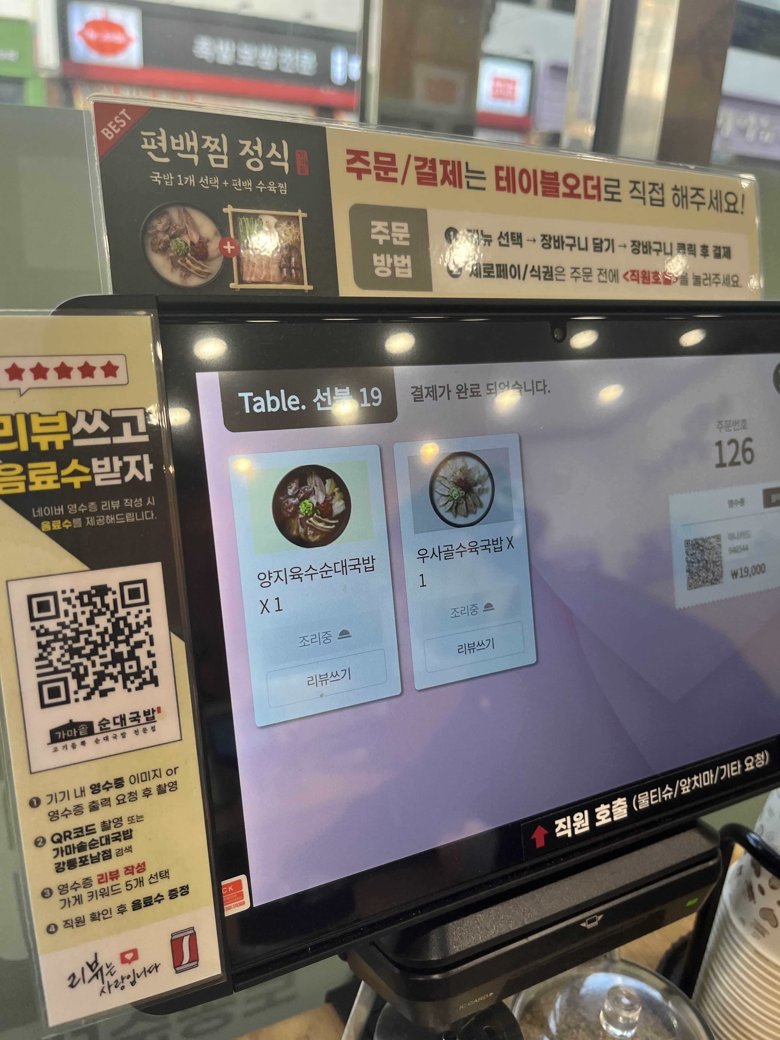 테이블 위에는 주문과 결제를 동시에 할 수 있는