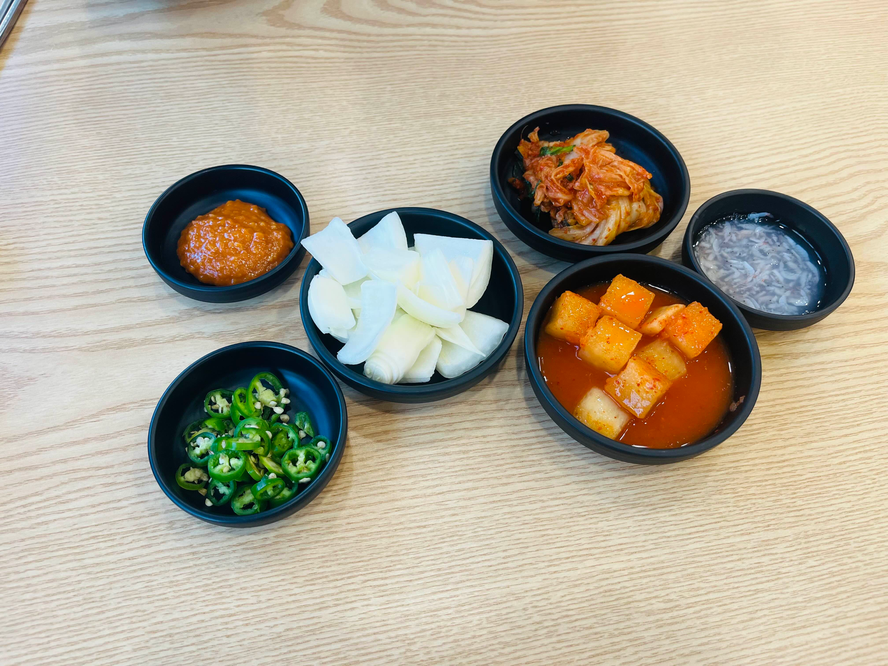 김치와 깍두기 그리고 새우젓이 기본 제공되는데